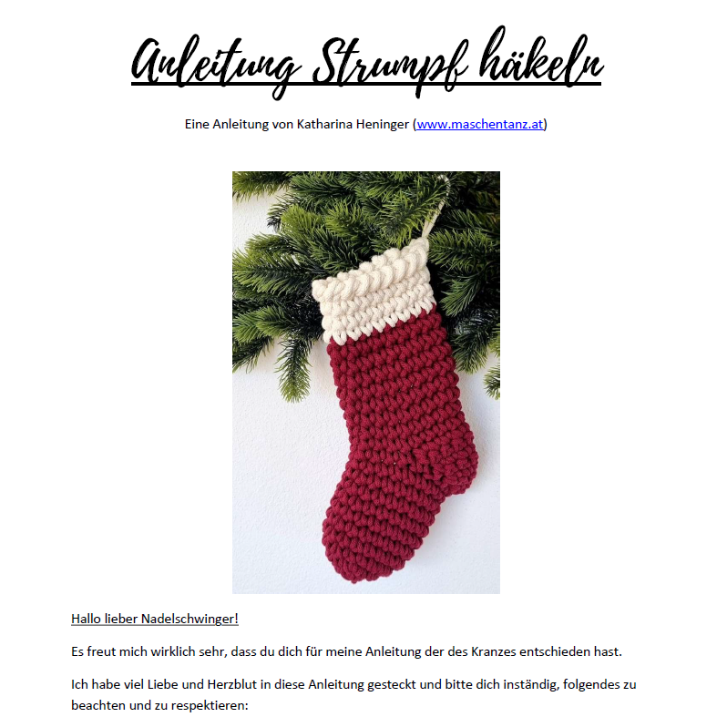Häkelanleitung von Maschentanz.at für deinen persönlichen Weihnachtsstrumpf mit zahlreichen Bildern und Erklärungen